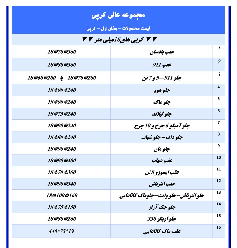 لیست محصولات عالی کرپی